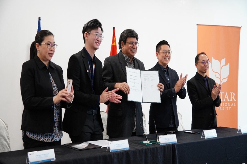 嘉興南洋職業(yè)技術(shù)學(xué)院黨委書(shū)記、校長(zhǎng)王雪亙,馬來(lái)西亞優(yōu)理國(guó)際大學(xué)校長(zhǎng)名譽(yù)教授丹斯里拿督斯里薩侯哈密阿布巴卡博士,公司副總經(jīng)理魯富貴等領(lǐng)導(dǎo)參加簽約儀式。